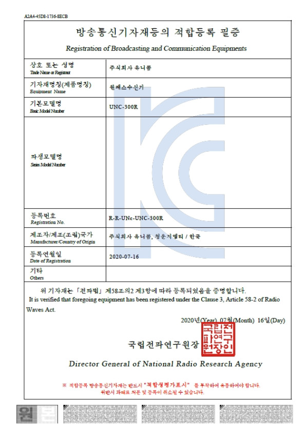 UNC-300R > 인증서